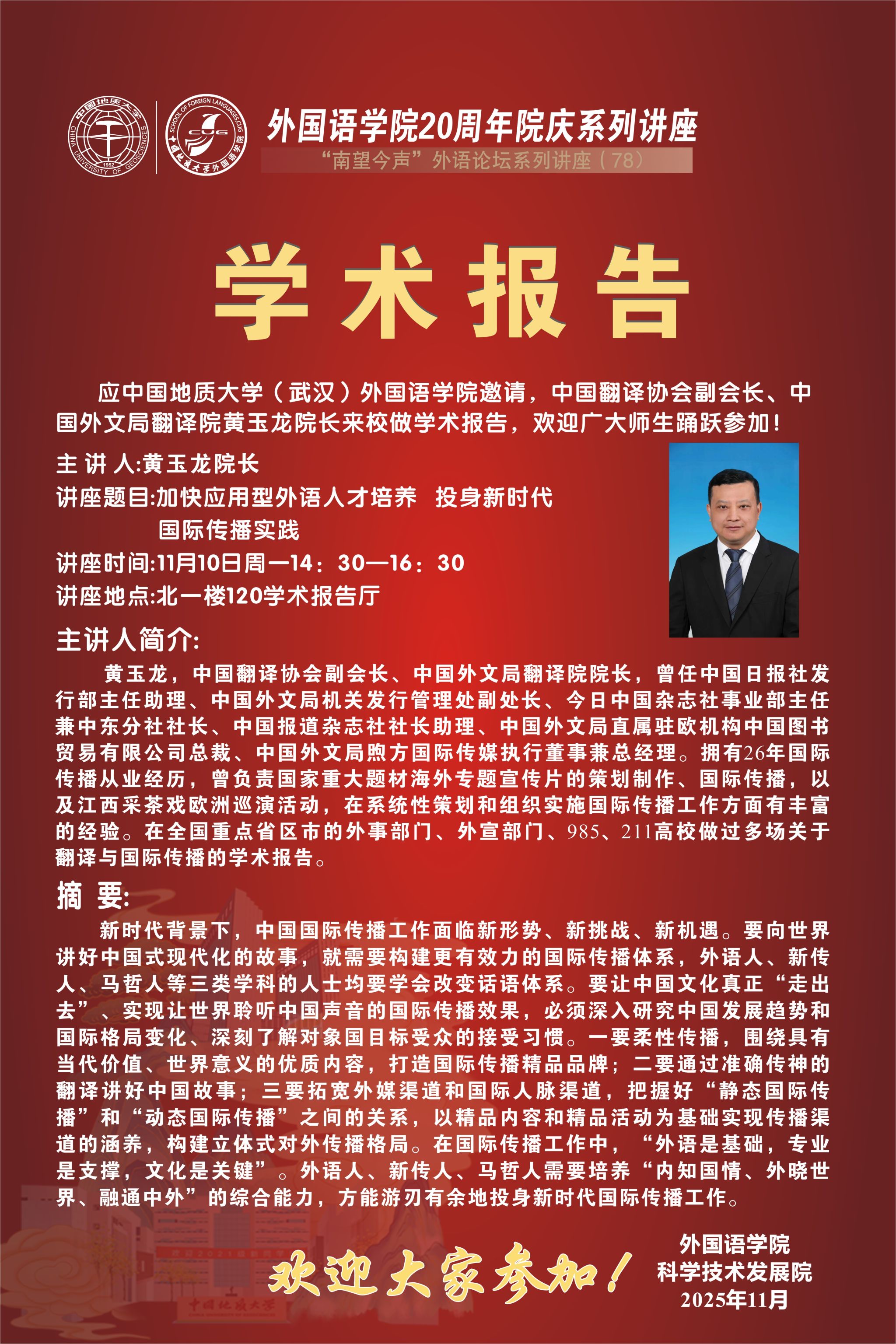澳门彩票有限公司 20周年院庆系列讲座暨“南望今声”外语论坛系列讲座(78)通知
