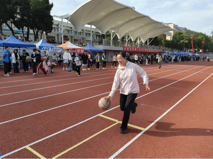 学院赖小春老师疾步如飞、控球稳健,勇夺60米拍球跑全校第5名。